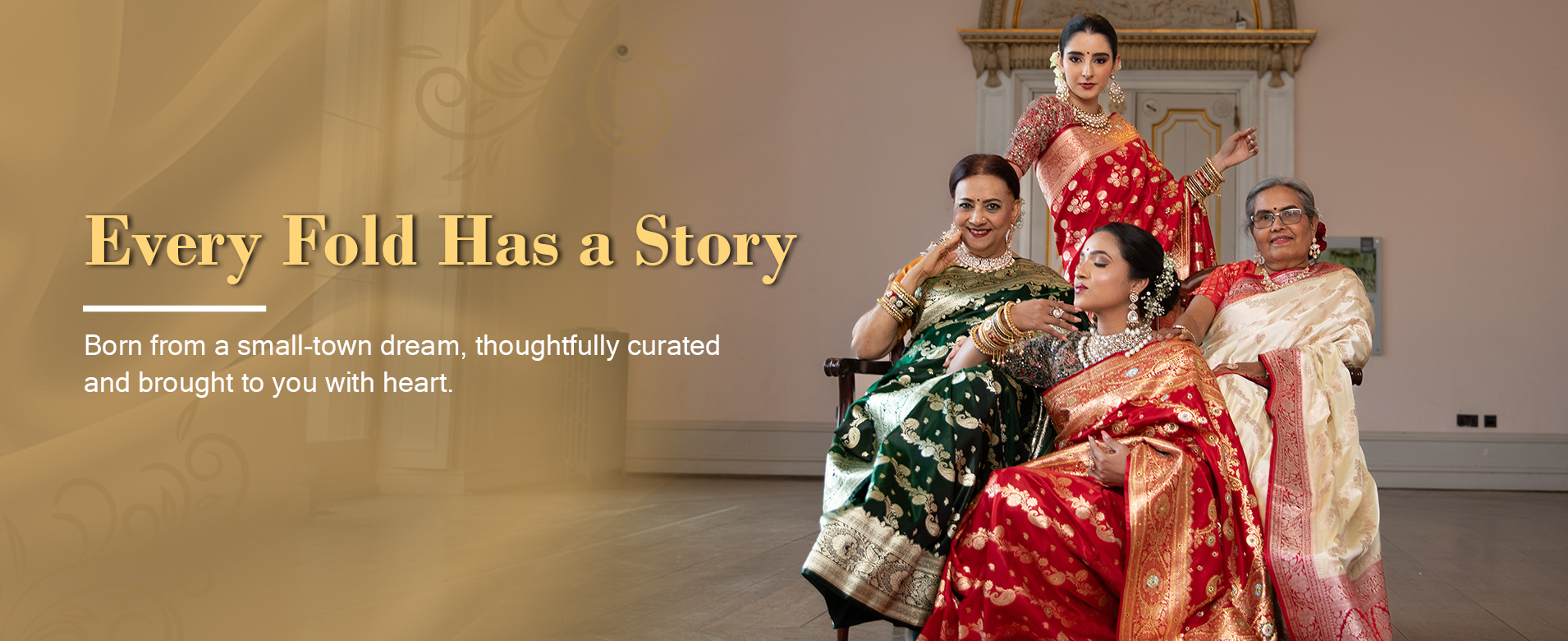 A collection of soft tissue silk sarees that radiate quiet luxury.