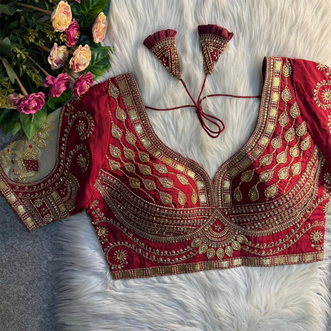 Crafted in Pure Fox Georgette with detailed hand embroidery, this bridal blouse brings elegance, structure, and softness together perfect for your special moments. Free Size…