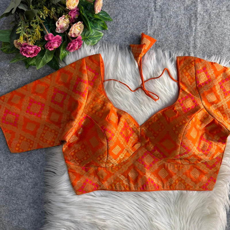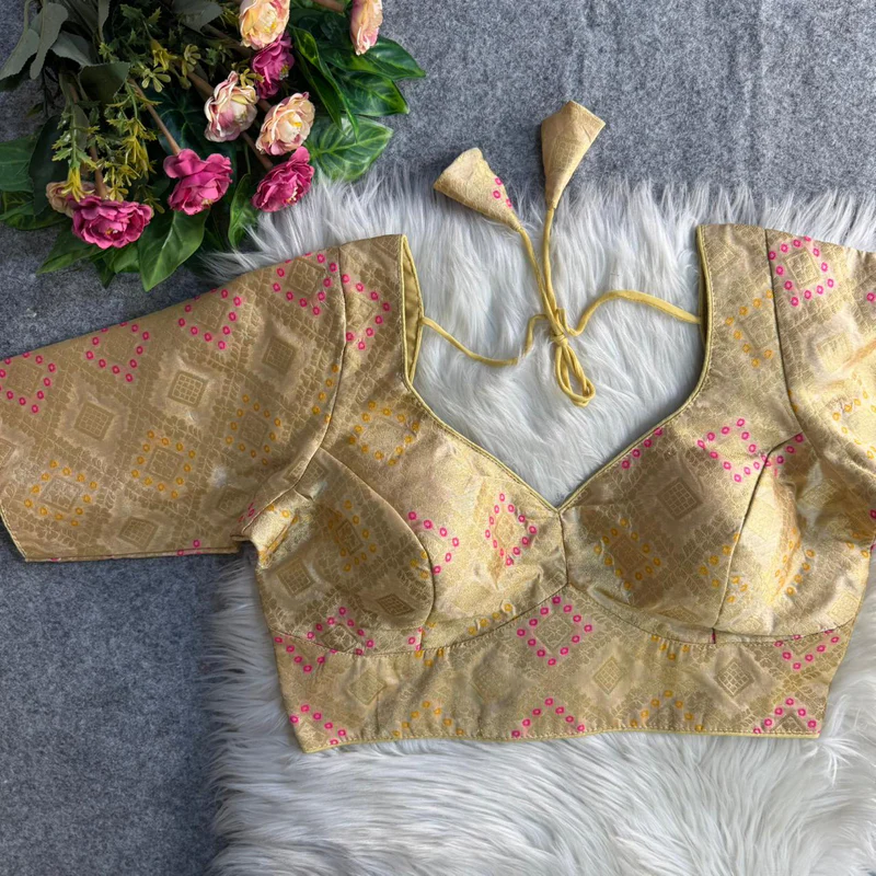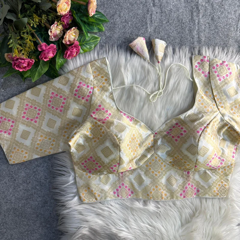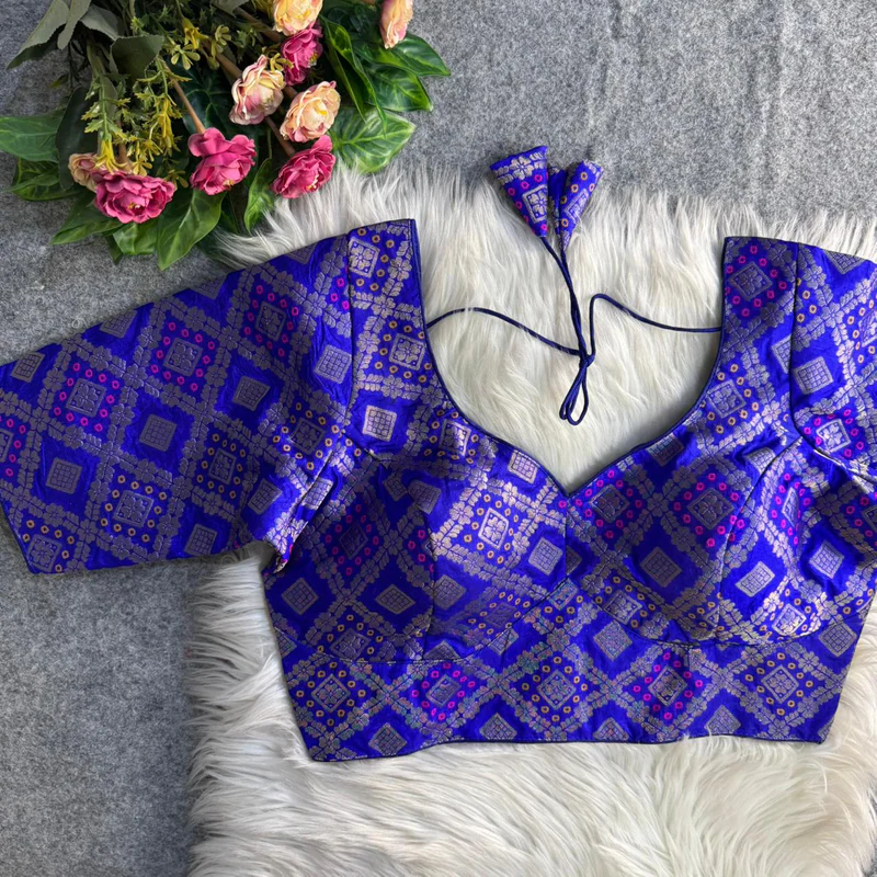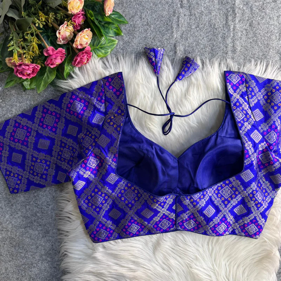 Design: Elegant partywear Banarasi blouse with traditional pattern