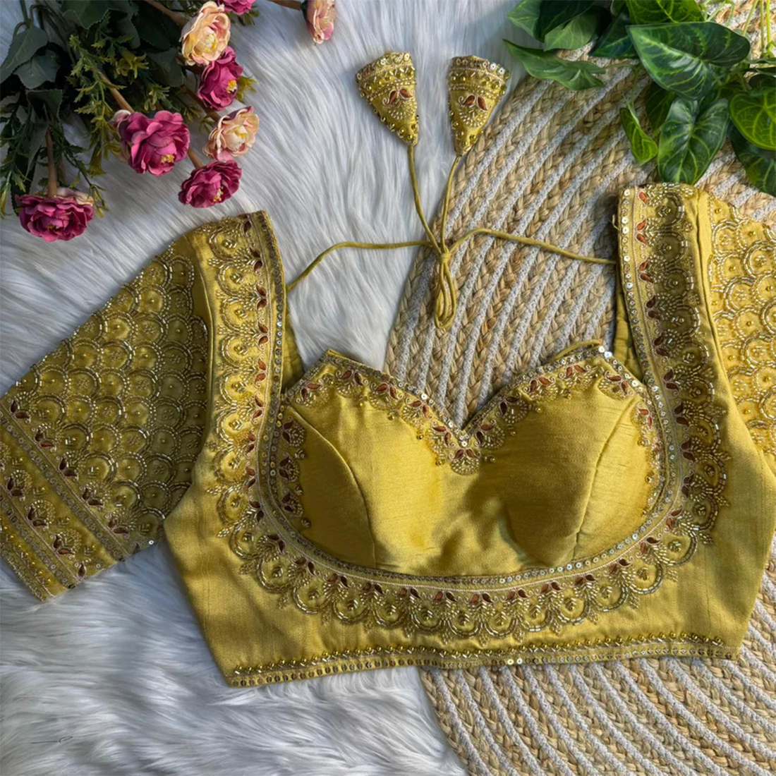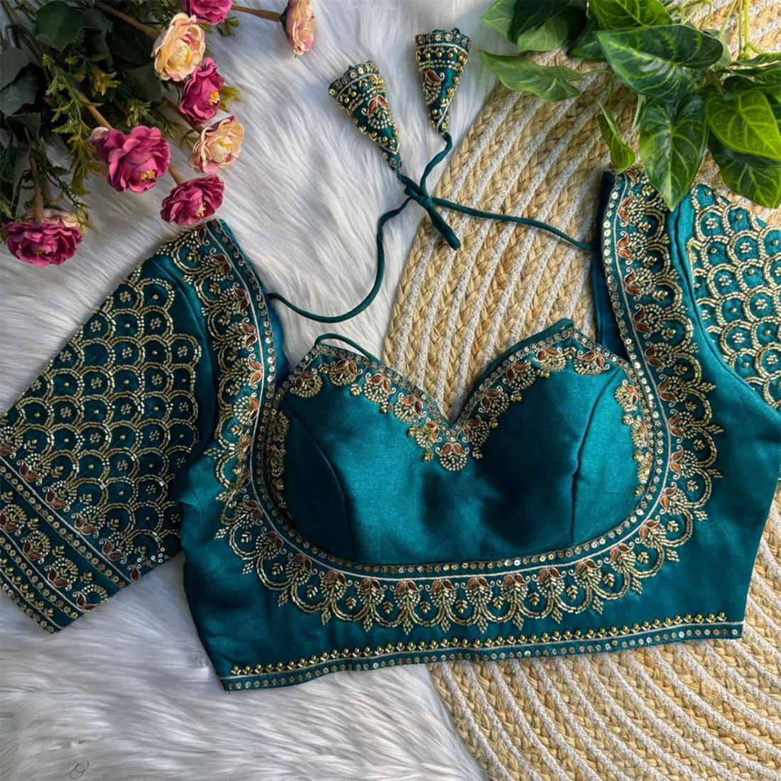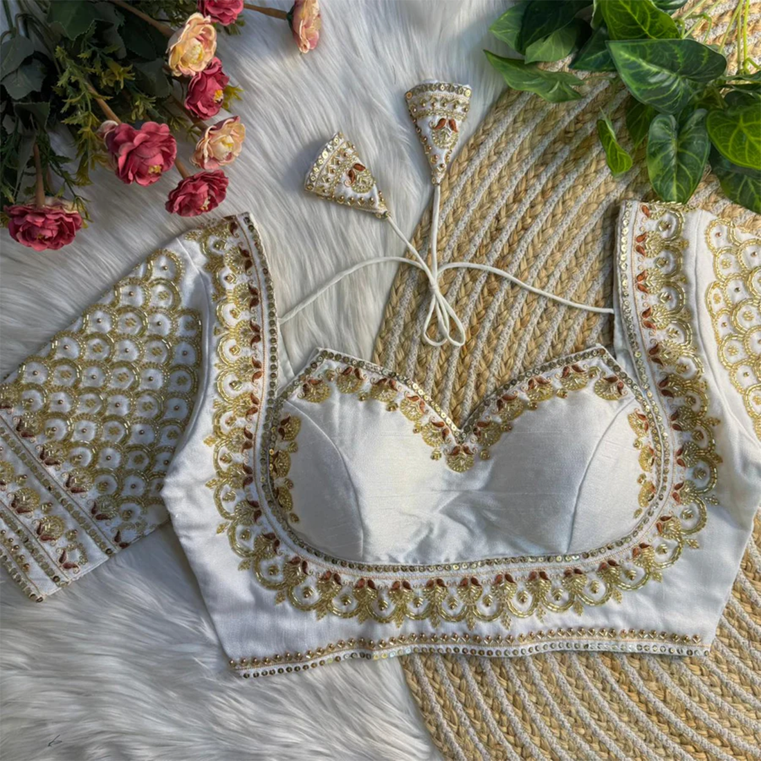 Back: Back open style with handmade hooks & designer latkans
