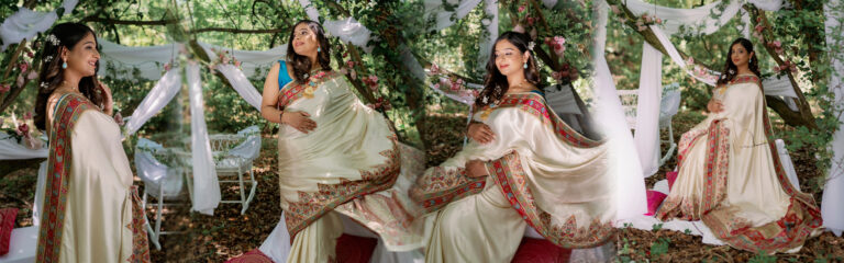 A modern heirloom. A saree that flows between past and present. Tradition retold on her terms.