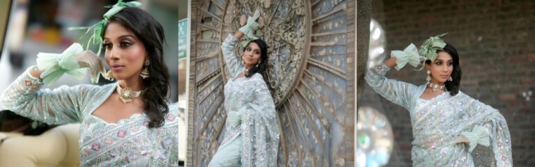 Quiet confidence wrapped in shimmer. Celebration, her way.