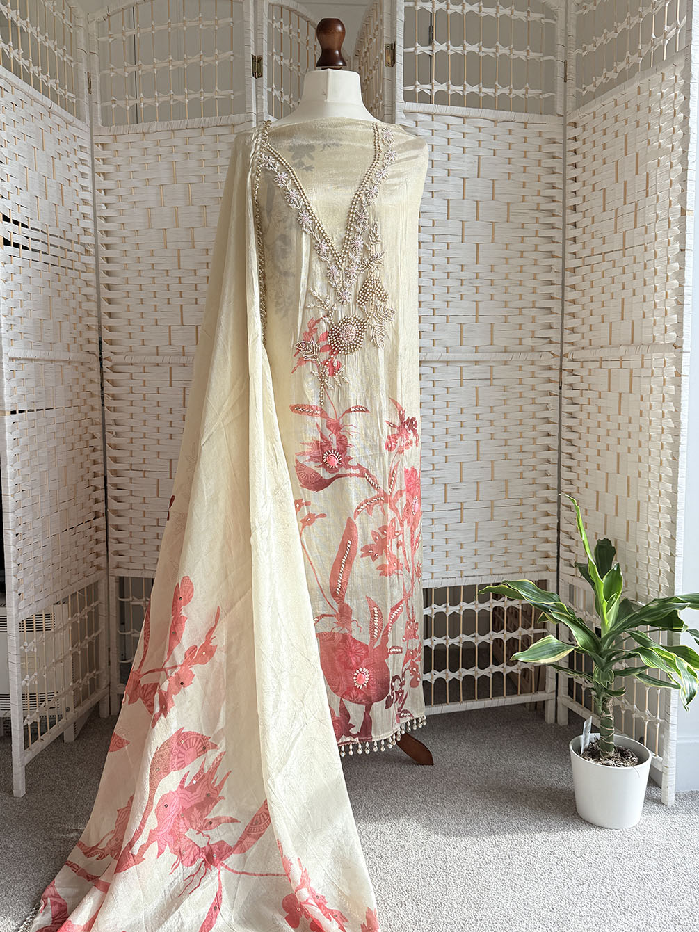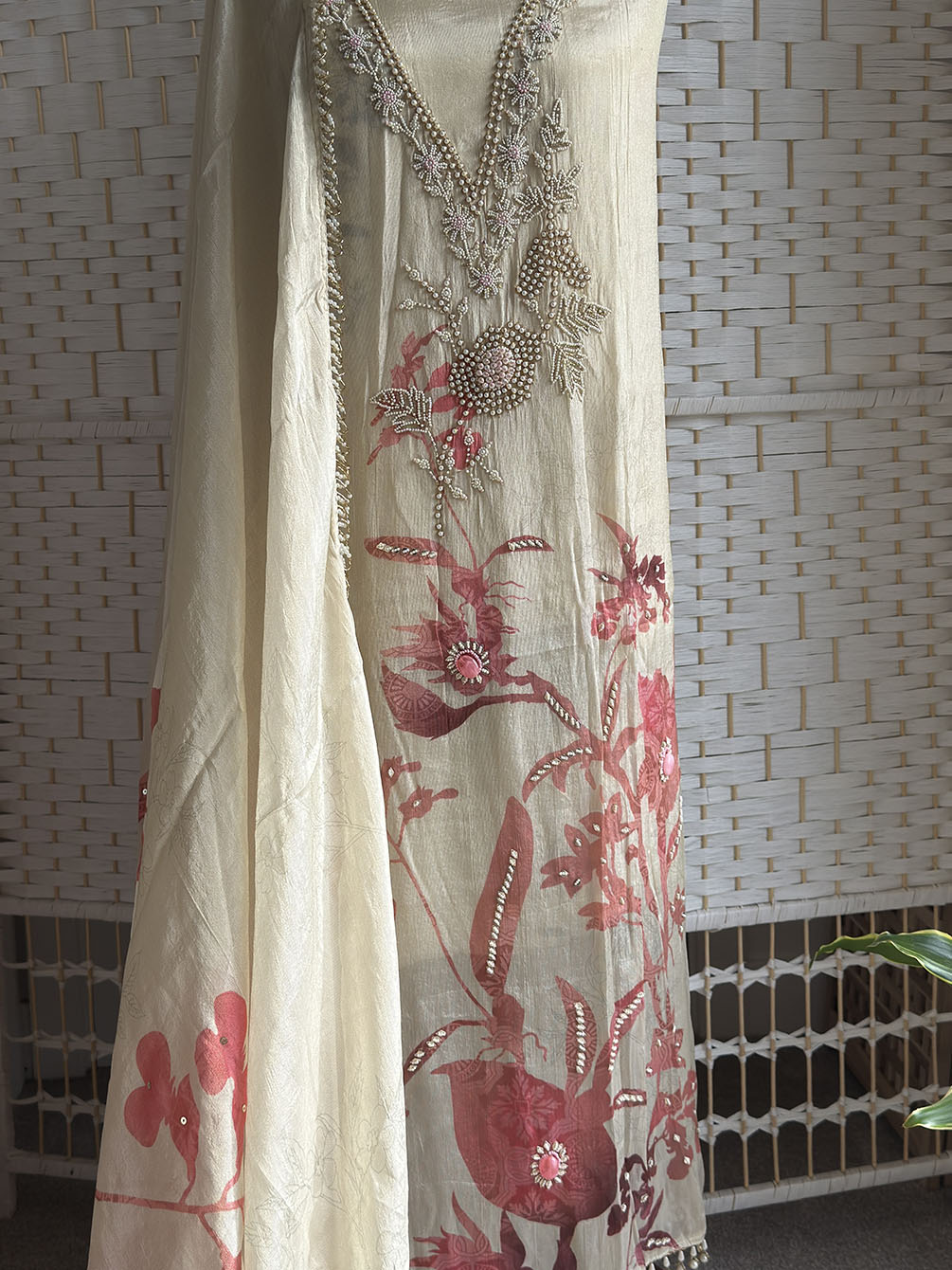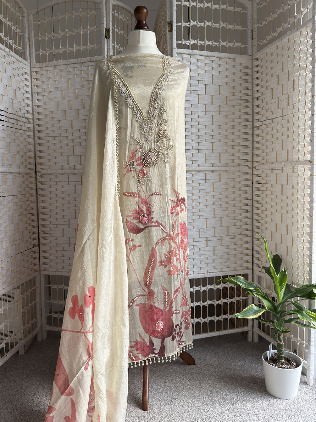 Unstitched | Hand & Pearl Work | Soft Tissue Silk | Includes Dupatta, Lining & Bottom