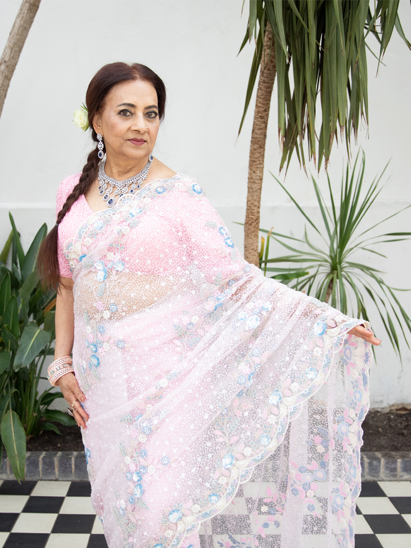 Fabric: Lightweight net with floral embroidery and sequin detailing