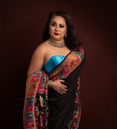 We first crossed paths during a shoot that celebrated real women, real stories no filters, no pretence. Mina wore a Raamro Style saree not just as a garment, but as an extension of her message: that beauty isn’t a mould, and confidence isn’t a size.
